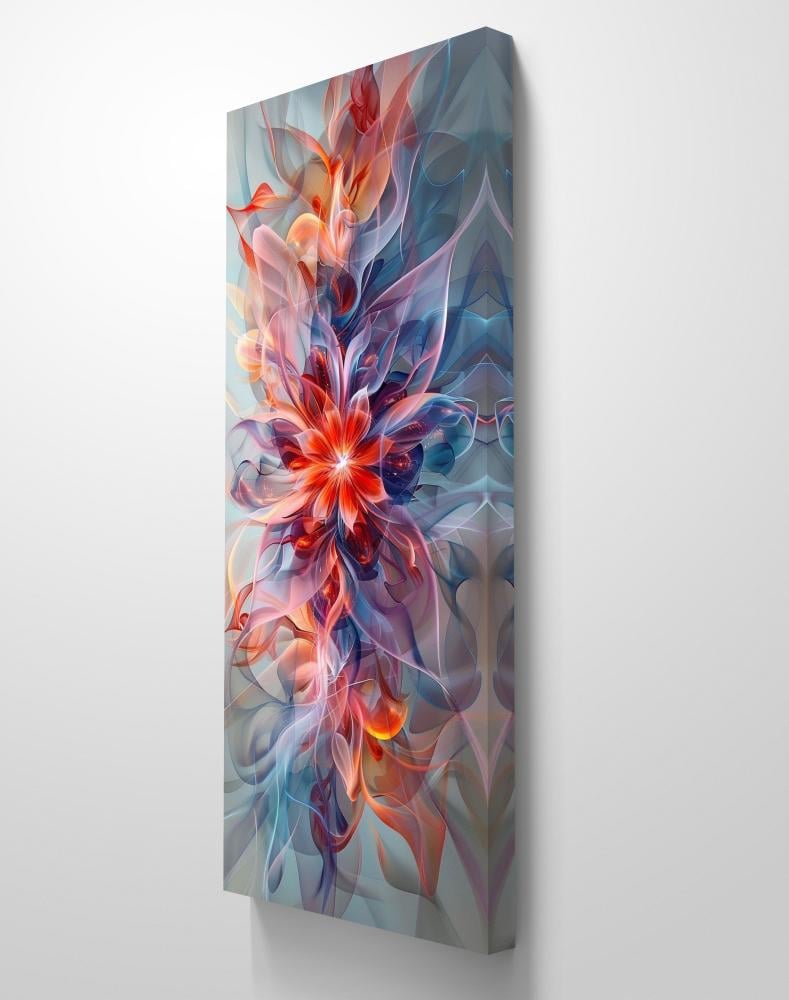 تمتاز هذه اللوحة الجدارية بتصميم زخرفي نباتي مستوحى من عناصر الطبيعة، مطبوعة بجودة فائقة على قماش كانفس فاخر من أجود الأنواع والأقمشة، لتمنح جدرانك مظهراً راقياً وأجواءً مفعمة بالدفء والهدوء.